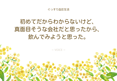80代 女性 初めてだからわからないけど、真面目そうな会社だと思ったから、飲んでみようと思った。