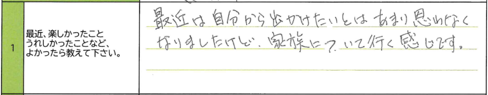 Q1.最近、楽しかったこと、うれしかったことなど、よかったら教えてください。