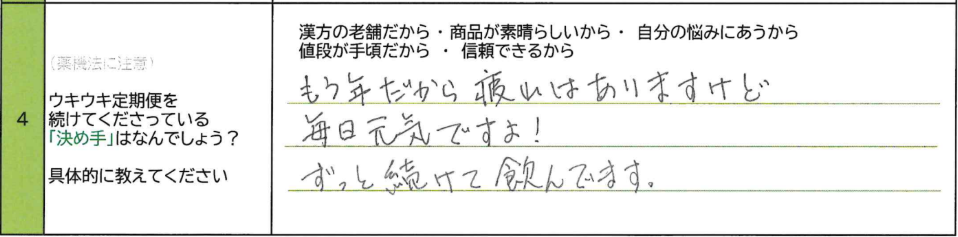 Q4.ウキウキ定期便を続けてくださっている「決めて」はなんでしょう?