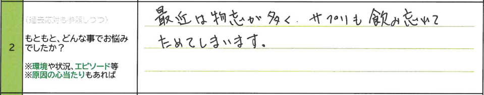 A.最近は物忘が多く、サプリも飲み忘れてためてしまいます。