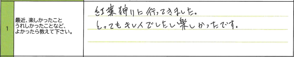 Q1.最近、楽しかったこと、うれしかったことなど、よかったら教えてください。
