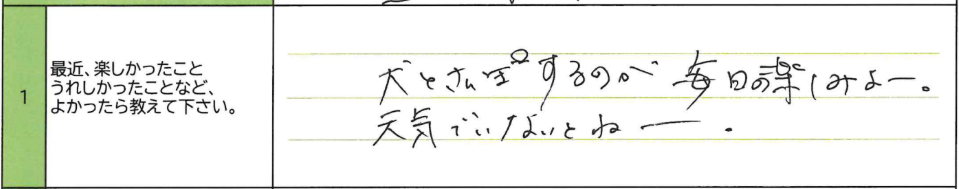 Q1.最近、楽しかったこと、うれしかったことなど、よかったら教えてください。