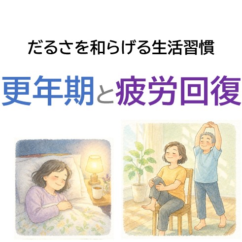 更年期のだるさや疲れは、ホルモンの変化や生活リズムの影響で起こりやすいものですが、食事・休養・軽い運動・リラックスを意識することで、負担を和らげることができます。