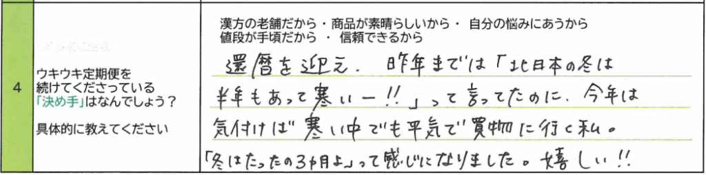 Q4.ウキウキ定期便を続けてくださっている「決めて」はなんでしょう?