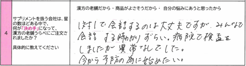 Q4.サプリメントを扱う会社は星の数ほどある中で、何が決め手になって漢方の老舗うらべにご注文されましたか?